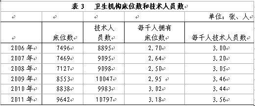 年末全区共有卫生机构1378个,其中:医院、卫生院783个,疾病预防控制中心(卫生防治机构)81个,妇幼保健院、所、站57个。实有病床床位9462张,其中:医院、卫生院9192张。卫生技术人员10797人,其中:执业医师4175人。每千人病床数和卫生技术人员数分别达到了3.18张和3.56人。