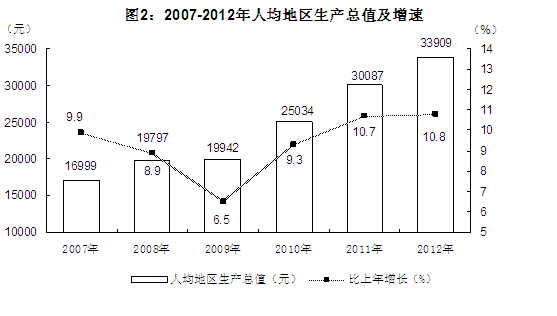 按常住人口计算,人均地区生产总值 33909元,增长10.8%。按当年平均汇率折合5372美元。