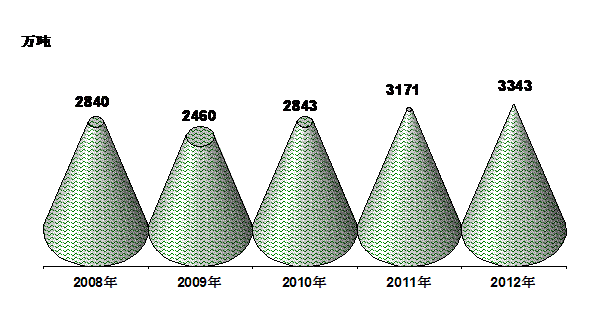 2012年,全省化学需氧量(COD)排放量78.75万吨,比上年下降4.51%;氨氮排放量5.63万吨,比上年下降3.22%;二氧化硫(SO2)排放量40.35万吨,下降2.35%,氮氧化物排放量控制在57.59万吨,比上年下降4.77%。