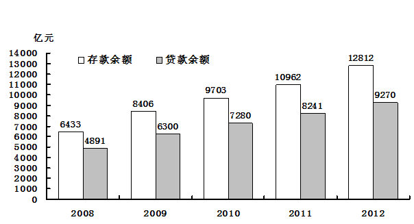 图8:2008—2012年全省金融机构本外币存贷款余额