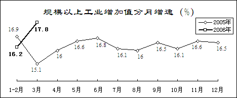 今年以来,工业生产保持快速增长势头。一季度,规模以上工业完成增加值17822亿元,同比增长16.7%,增速比去年同期加快0.5个百分点。其中,3月份完成增加值6680亿元,增长17.8%。