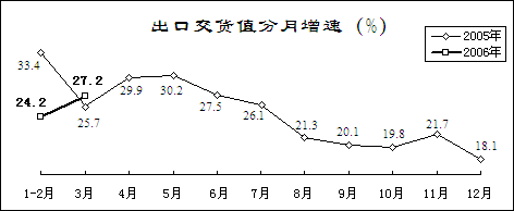 工业产品出口快速增长。一季度,工业企业实现出口交货值11860亿元,同比增长24.7%,增速同比减缓6.9个百分点。