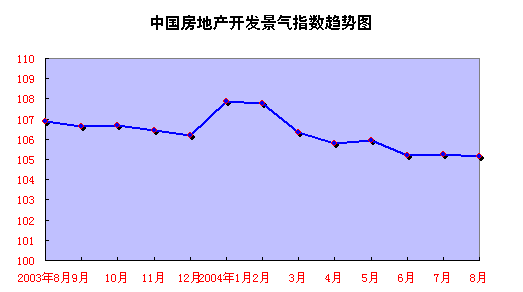 8月份,“国房景气指数”为105.16,比7月份下降0.09点,比去年同月下降1.73点。