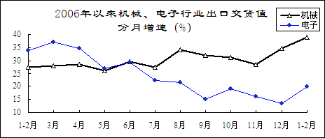 (三)机械行业生产出口增速加快,电子行业增幅回落较多