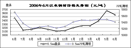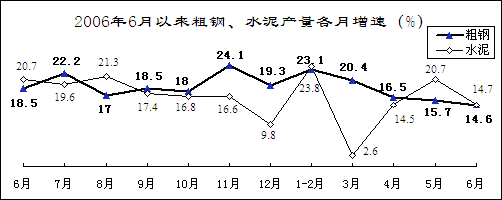 全国粗钢产量23758万吨,同比增长18.9%,增速同比加快0.6个百分点;钢材产量27025万吨,增长23.9%,减缓1.9个百分点,其中镀层板、涂层板等高附加值产品产量均有不同程度加快。钢材出口3379万吨,增长97.7%;进口869万吨,下降7.6%。铁矿砂进口18791万吨,增长16.4%。钢材价格先涨后落。今年以来,国内市场钢材价格持续上涨,财政部5月21日出台对80多种钢材产品加征出口关税和提高部分初级钢材产品出口税率的政策后,钢材价格逐步回落。6月末,国内市场钢材价格综合指数110.71点,比5月末回落2.63点,同比回落4.14点,比年初上涨5.56点。6.5mm盘条、10mm中板、0.5mm冷轧薄板平均价分别为3557元/吨、4433元/吨和5408元/吨,比5月末回落3%、2.3%和1.5%。前五个月,冶金行业实现利润942亿元,增长116.7%。