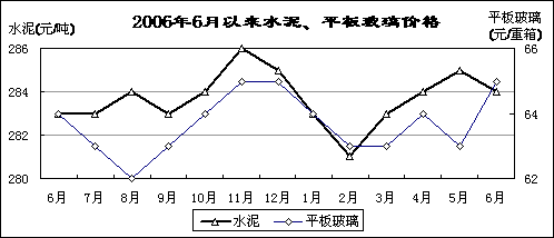 全国水泥产量61830万吨,同比增长16%,增速同比减缓4.8个百分点;平板玻璃产量24374万重箱,增长17.8%,加快6.2个百分点。水泥价格有所回落,平板玻璃价格上涨。6月份,重点建材企业水泥平均出厂价为284元/吨,比上月回落1元/吨,同比上涨1元/吨;平板玻璃出厂价为65元/重量箱,比上月上涨2元/重量箱,同比上涨1元/重量箱。6月末,重点建材企业水泥库存1006万吨,同比上升16.6%;平板玻璃库存1859万重量箱,上升21.5%。前五个月,建材行业实现利润252亿元,增长61.8%。其中,水泥行业利润53.3亿元,增长91.1%;平板玻璃制造行业由去年同期净亏损8.2亿元转为净盈利4.9亿元。