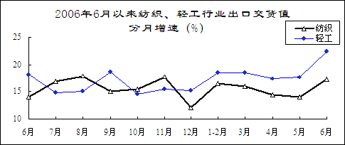 (四)纺织行业生产、出口加快增长,轻工行业增幅有所回落