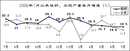 (二)粗钢、水泥、玻璃产量增速有所减缓,有色产量加快增长