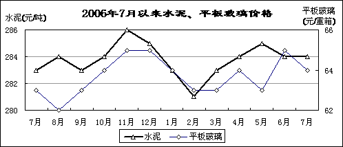 当月全国水泥产量同比增长11.6%,增速比上月减缓3.1个百分点;平板玻璃产量增长12.8%,减缓6.3个百分点。水泥、平板玻璃价格基本稳定。当月重点建材企业水泥平均出厂价284元/吨,与上月持平,同比上升1元/吨;平板玻璃出厂价64元/重量箱,比上月下降1元/重量箱,同比上升1元/重量箱。月末,重点建材企业水泥库存961万吨,同比上升19.3%;平板玻璃库存1846万重量箱,下降18.9%。1-7月,全国水泥产量73519万吨,同比增长15.4%;平板玻璃产量28597万重箱,增长17.2%。