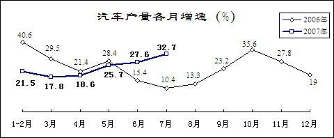 当月机械行业增加值同比增长23.6%,增速比上月减缓2.4个百分点;出口交货值增长30.4%,比上月减缓2.9个百分点。汽车产量增长32.7%,其中轿车产量增长27.9%。发电设备、数控机床产量分别增长77.2%和30.4%,环保设备产量增长17%,大中型拖拉机产量仅增长5.7%。1-7月,机械行业增加值增长24%,同比加快2.7个百分点;出口交货值6374亿元,增长34.1%,加快6个百分点。汽车产量527万辆,增长24.3%;其中,轿车282万辆,增长26.4%。发电设备产量6980万千瓦,增长13.7%,其中水轮发电机增长96.7%。