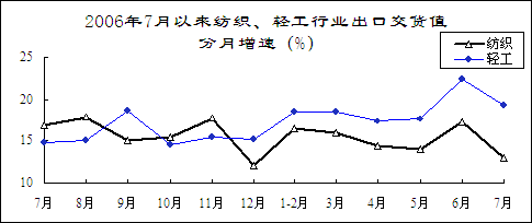 (四)纺织、轻工行业生产和出口增速均有所减缓